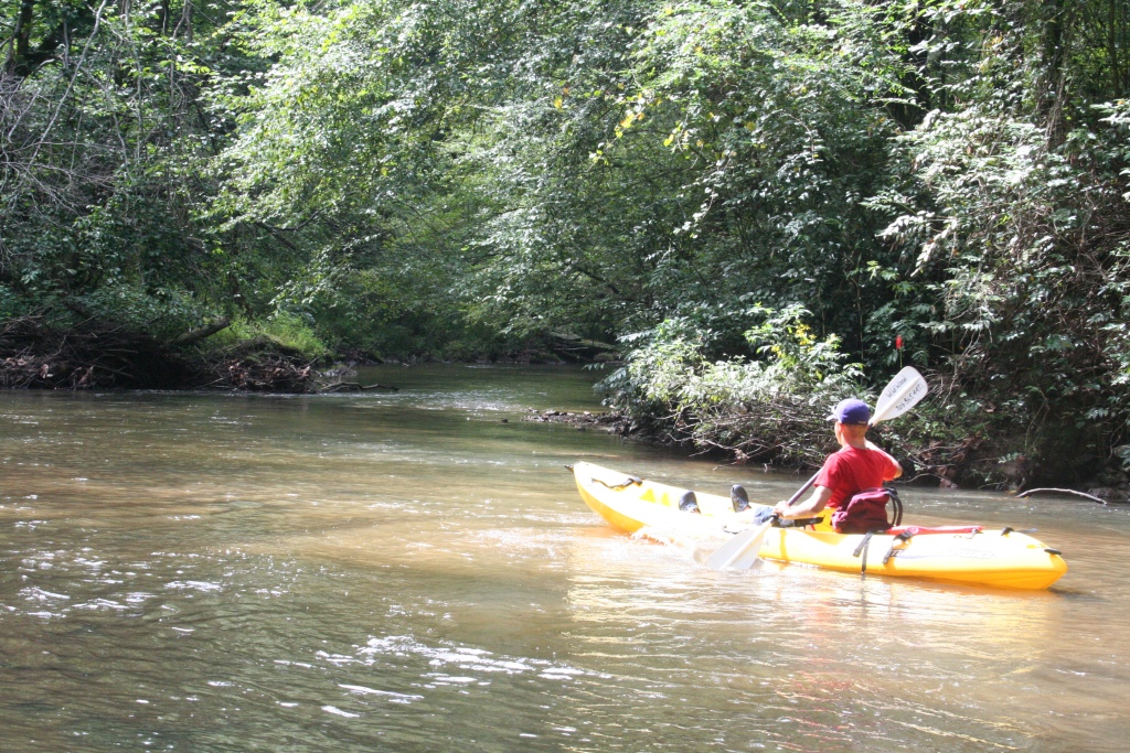 We took these pictures where we entered the creek (the creek dumped us into the Chattahoochee eventually) and then gave the camera to the guy who we rented the kayaks from. I'm so glad I did now-it was have gotten soaked. But I was bummed not to be able to take any pictures! We let the boys get out and swim in some of the deeper areas. Often times Andrew and Micah would get out of the boat and just hang on to the back or swim along the side. They were in boy heaven. :)